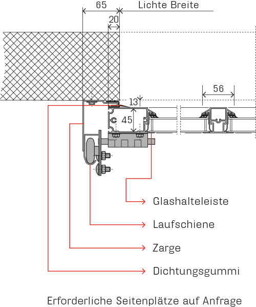 Standard-Umlenkung mit Dachfolge Benötigte Sturzhöhe auf Anfrage.